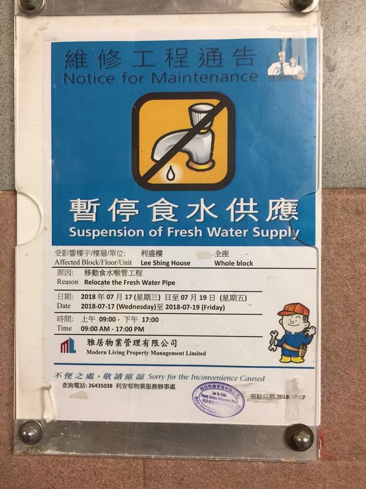 网站首页 > 通知公告 > 停水通告. 停水通告 親愛的住戶 您好: 為確保水質的潔淨,訂於 月 日(星期 ), 實施水塔清洗,施工期間會間歇性停水,煩請住戶預 先儲水備用,施工後請先放流殘水,再行使用! 緊急通知單上會出現的「停水」的說法。這是口語上比較少用一點的。 water outage / cut / failure 那假如今天我們是跟隔壁鄰居聊到要停水這件事,就可以換個說法: the water got cut off.(停水了。) we're out of water.(我們沒有水了。) the water supply is turned off.(停水了。 小提示: 1、因停水和恢复供水有可能 提前 或 延后 ,请您提前做好储水准备,并关闭好家中水龙头,避免供水后发生跑水。 恢复供水后有可能出现水浑、水黄的现象,建议放水后使用。 2、节假日水务集团无停水公告 4月20日停水信息 因浑南水务二水源春季检修, 2021年4月20日8时至16时浑南新区北. 网站首页 > 通知公告 > 停水通告.