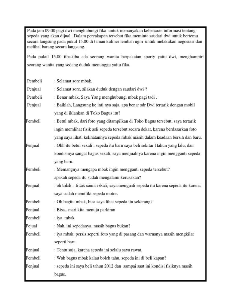 Contoh Teks Negosiasi Tentang Jual Beli - Terkait Teks from cdn.staticaly.com Sebelum masuk pada contoh teks negosiasi beserta strukturnya, kamu tentu sudah mulai paham tentang negosiasi dari ilustrasi di atas kan? Sebut saja negosiasi yang ada di pasar maupun kantor untuk mendapatkan harga jual atau beli yang tepat. Dia datang ke sebuah toko buku bekas untuk mencari buku dengan tahun yang lama. Suatu hari ada seorang siswa sekolah menengah pertama pergi ke toko buku bekas. Kami sudah memikirkan soal risiko itu, pak. (irwan selaku ketua osis menghadap kepala sekolah untuk menyerahkan proposal kegiatan latihan dasar kepemimpinan). Contoh teks negosiasi dalam bentuk dialog. Berikut adalah contoh teks negosiasi singkat tentang ✅ jual beli, ✅ gaji, dll.